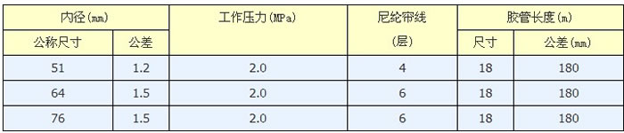 用途:供炼钢设备输氧气,冷却循环水等专用特点:1. 胶质具有优良的抗氧性和耐热性能 2. 胶管承压力高,压力下管体几何变形小,承压稳定。3. 胶管具有良好的抗拉伸,扰曲疲劳使用性能。 4. 胶管金属接头密封性好,拔脱强度高。5. 产品性能符合Q/JYG J02-94。6. 冷却循环水。